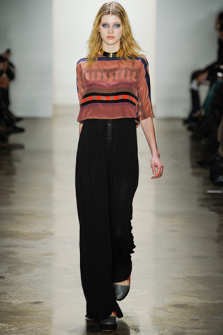 The Fall 2011 season collections started strong with common themes such as maxi skirts, layering with a cable net loose crew neck sweater, color blocking, pants, and lowered waist lines. Reoccurring colors included black, green, and gray (not shocking...)